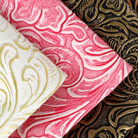 Tela de cuero de PVC con flores en relieve para decoración de bolsos y joyeros